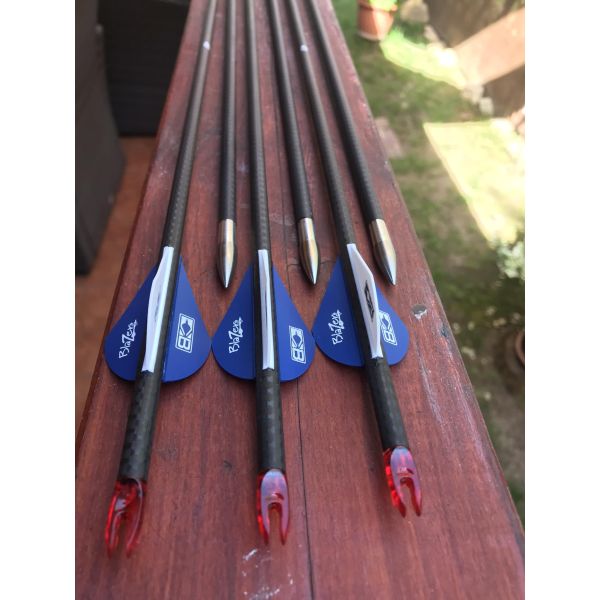 Brass inserts,Moon nocks, Flat nock, Lighted nocks, Blazer vanes, 4 inch vanes fletching service ,125grs screw points sold separately..